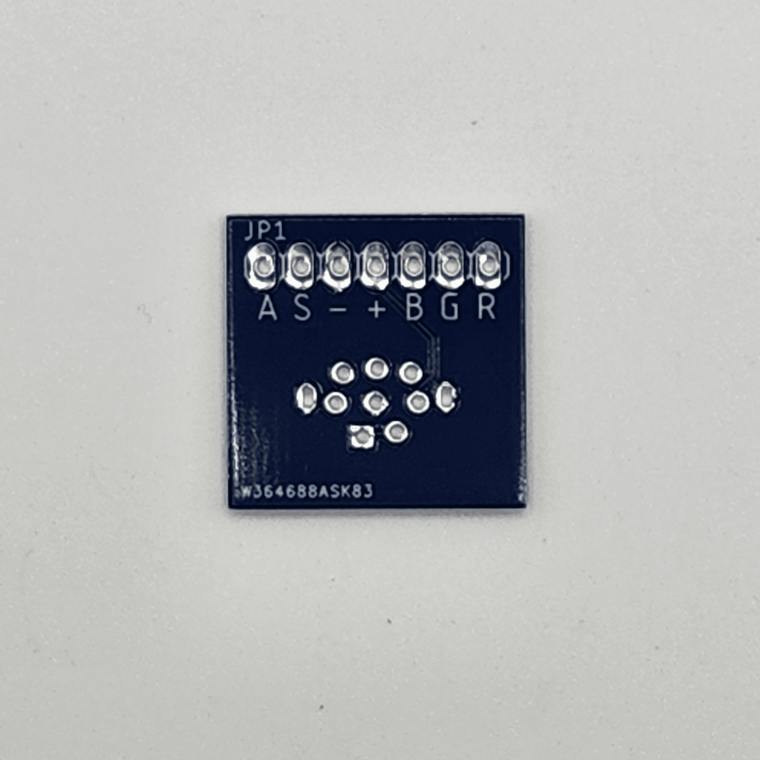 A small breakout board for wiring a TMS-RGB board to an XRGB 8-pin mini DIN output port. The breakout board assumes mono audio goes to both left and right channels.