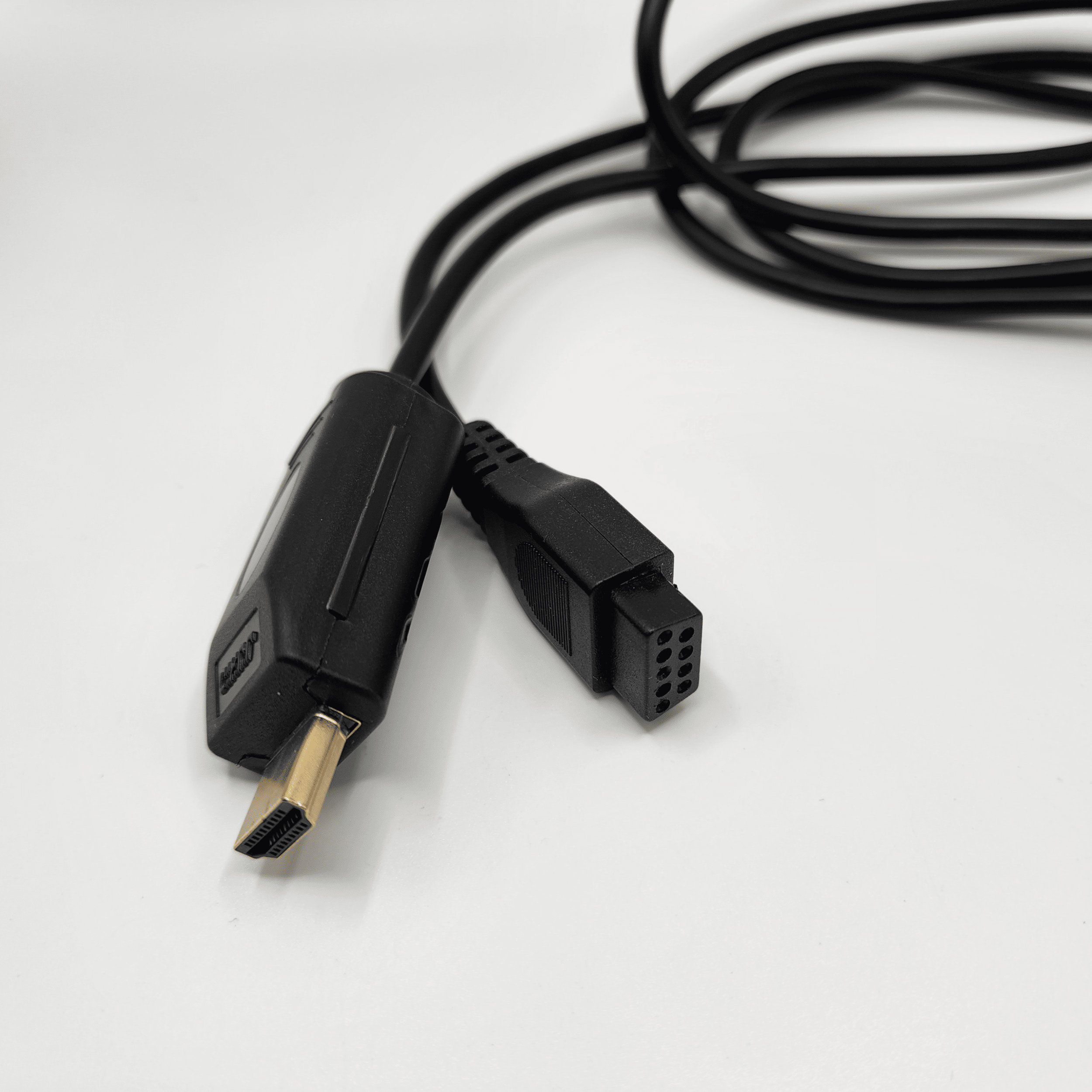 1.8m DB9 controller extension cable modified into a RetroSpy Vision cable. The controller to RetroSpy Vision portion is about 1 foot long with the RetroSpy Vision to console portion of the cable being the remainder of the 1.8m.