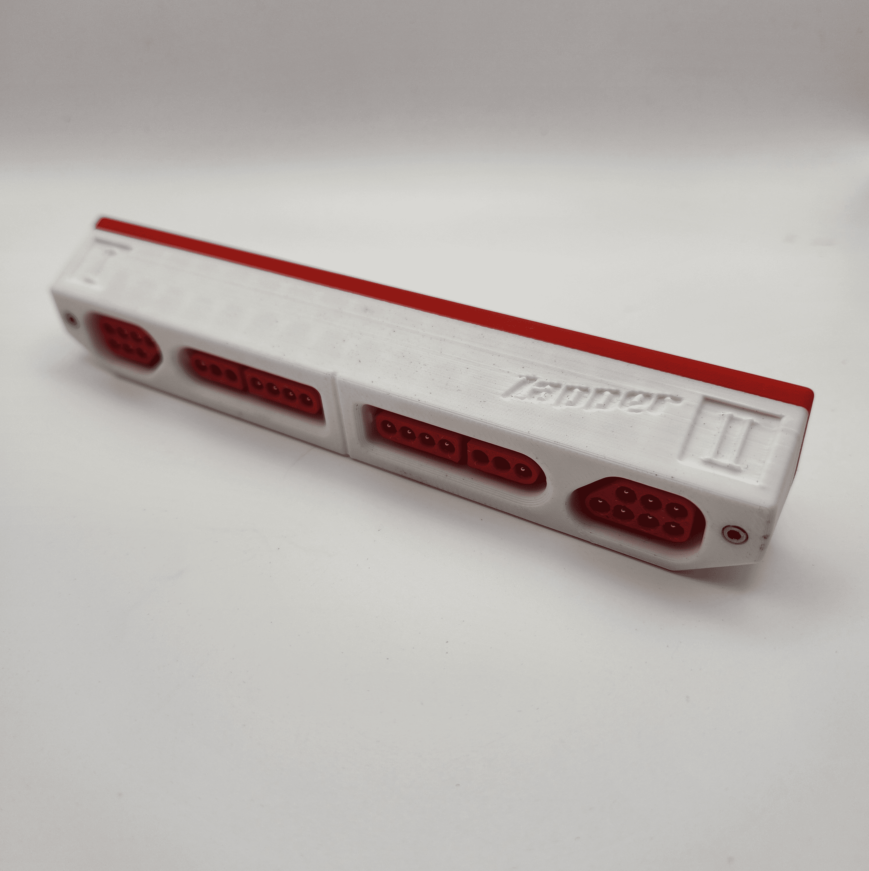 The “FamiCoun” Front Expansion NES/SNES Controller Adapter enables connecting NES and SNES controllers to the front port of a Nintendo Famicom. The player 2 NES port accommodates the Zapper, as indicated on the shell.