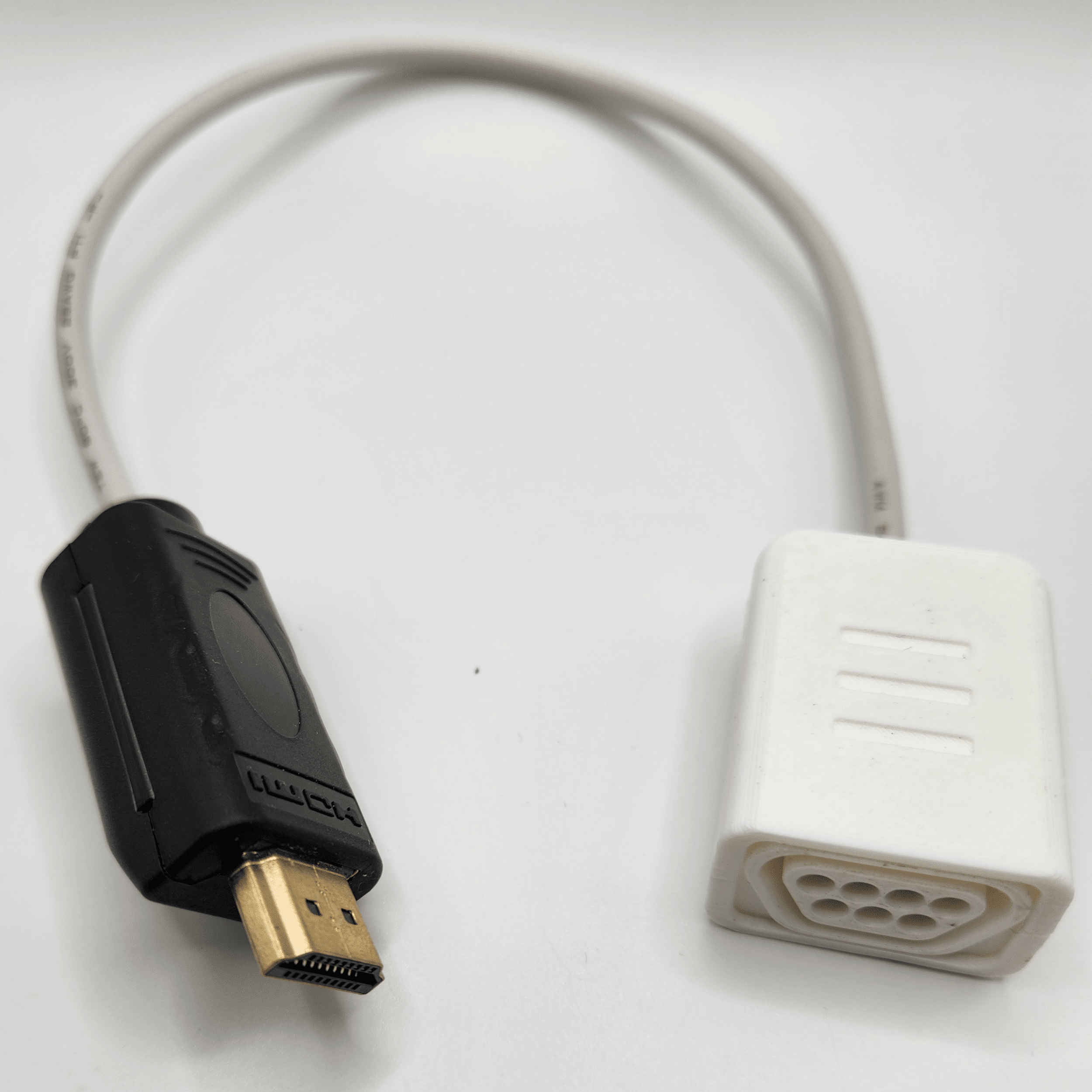 For a full input display setup with this cable a RetroSpy Vision Input Display device is required. Additionally these custom-made PC-FX RetroSpy cables are 3D printed with PLA. Exposing the cable to high temperatures or excessive force may damage the 3D printed ends of the cable.