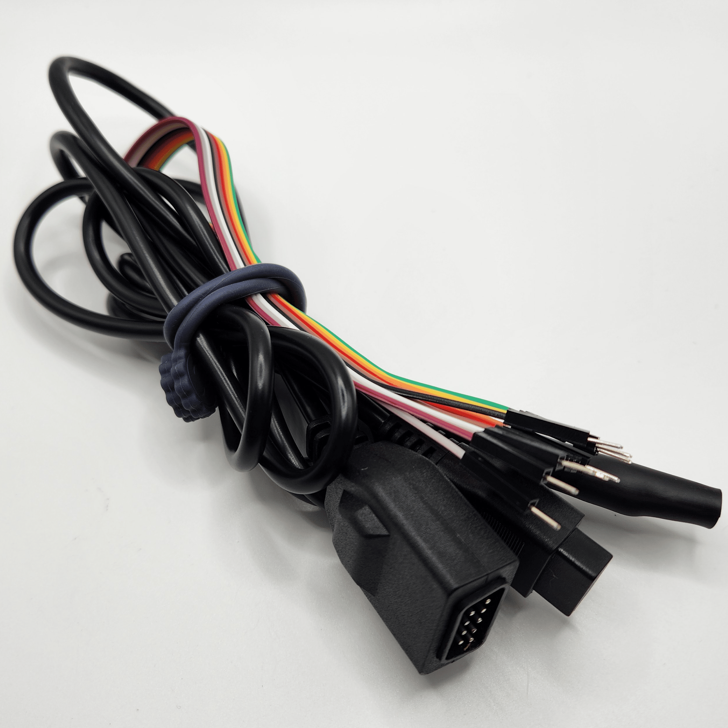 Six foot DB9 (Atari/Genesis/SMS-style) controller extension cable already modified into a RetroSpy cable. The cable splice uses 12″ Dupont wires about 1 foot away from the female end of the cable.