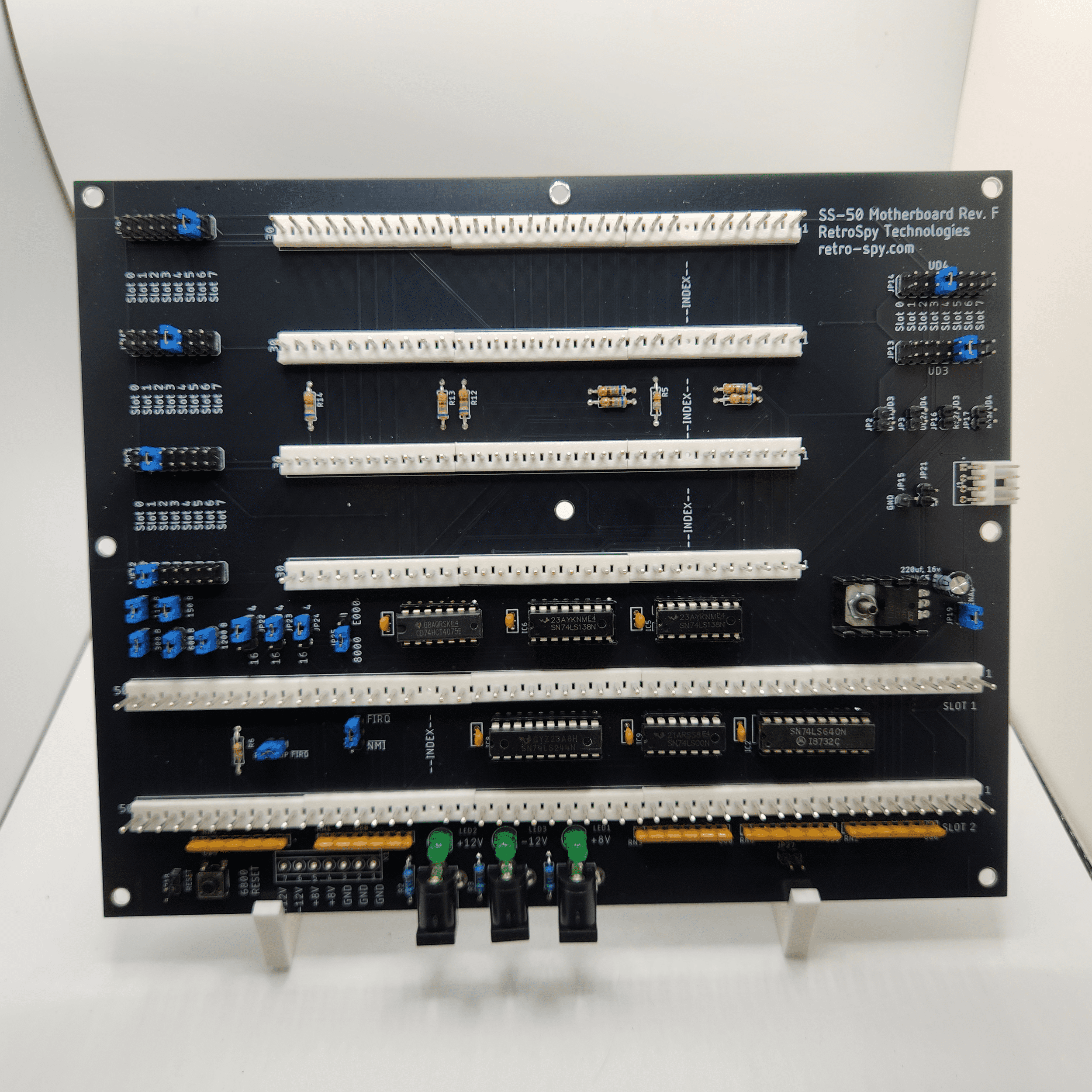 The RetroSpy Technologies SS-50 motherboard is a modern and compact take on a SS-50/30 motherboard. Intended for use with the RetroSpy Technologies 6800 CPU Board and one or more SS-30 peripheral boards, but works with vintage SS-50/30 boards also.